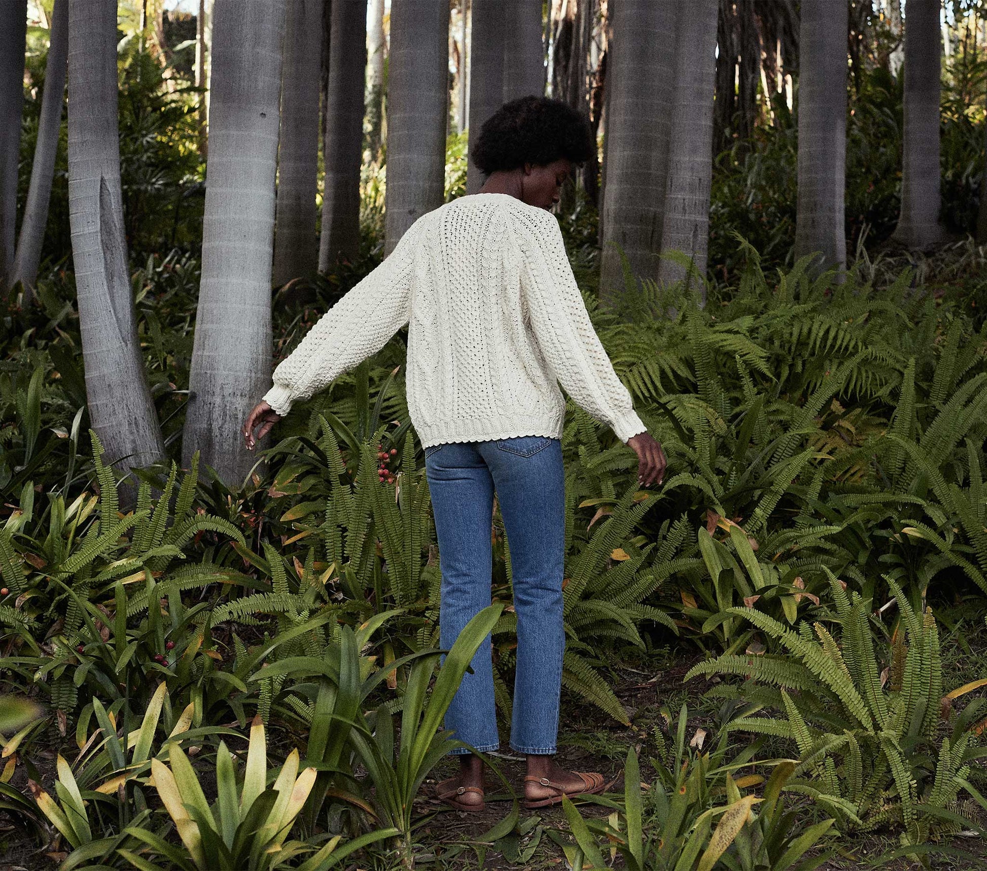 In a textured, substantial knit, the Abril Cardigan Sweater brings a dose of handcrafted charm to your wardrobe. With long raglan sleeves and a collar adorned with scalloped crochet detailing, this cardigan is perfect for facing the springtime chill. Built-in side pockets with crochet detailing make the perfect place to tuck treasures, while a landscape of varying cable designs along the body adds tactile allure. The buttons down the center front are adorned with crochet flower designs, adding sweetness to this heirloom piece.