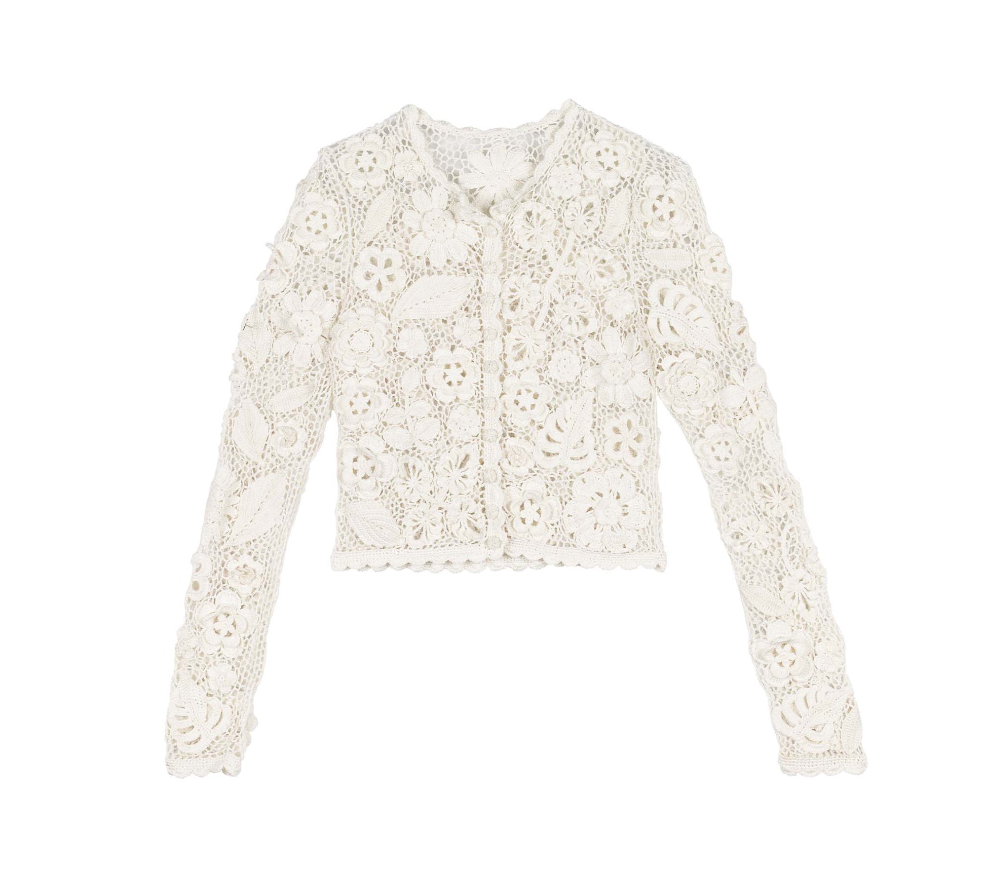 Lovingly hand-crocheted by artisans in Peru from soft Pima cotton, the ‘70s-inspired DÔEN Heirloom Alameda Cardigan—a favorite of our co-founders, Margaret and Katherine—features an intricate allover floral crochet design and scallop crochet trim at the crew neckline, cuffs, and hem. Delicate hand-crocheted buttons extend down the front. Due to the handmade nature of this piece, slight variations may occur.