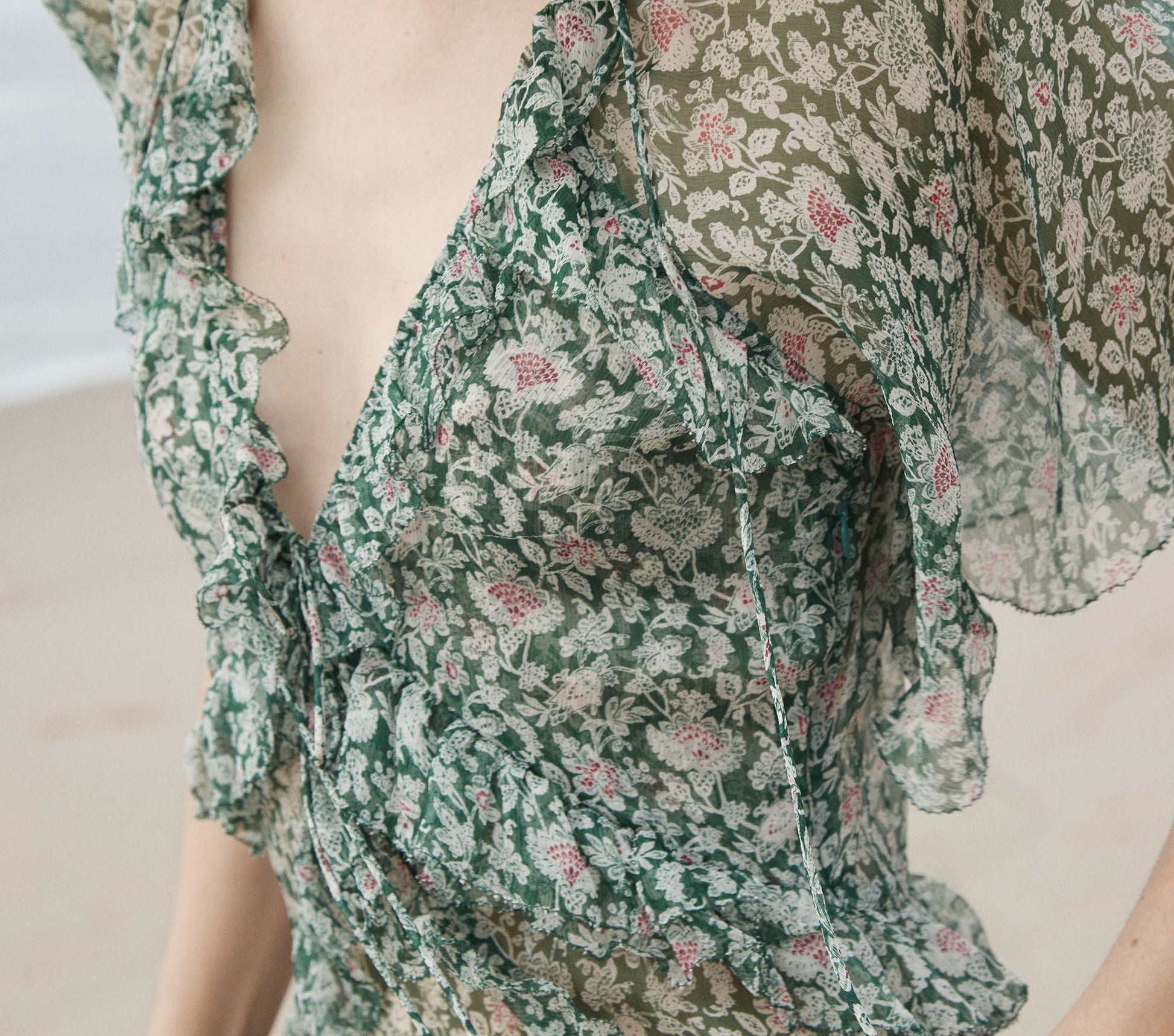 In 100% Silk, the DÔEN Antoinette Dress is our vintage-inspired evening look, a showstopper for late night events with a spirit daring enough to take it into the daytime. The fluttery cape sleeves reference 1930s movie star gowns, while the low cut and tie up styling combine with the ruffles for ‘70s bliss. In forest fantasy Emerald and Radish or pinky beige Adobe Tea Floral with black contrast stitching, we’re coming up with any excuse this spring to wear our dearest Antoinette.
