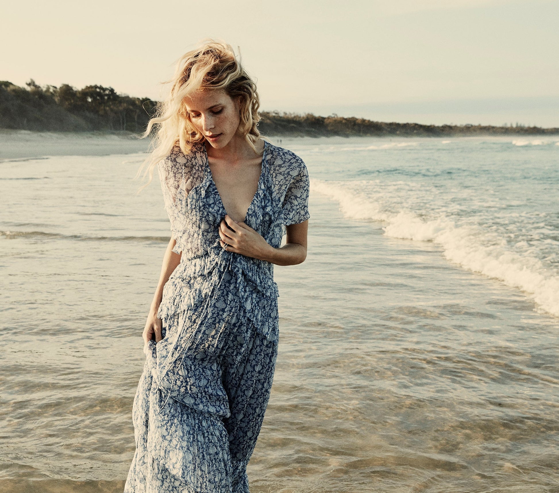 In 100% silk, the Dôen Antoinette Dress is our vintage-inspired evening look, a showstopper for late night events with a spirit daring enough to take into the daytime. The fluttery cape sleeves reference 1930s movie star gowns, while the low cut and tie up styling meet the ruffles for bohemian bliss. In our Porcelain Blue Tea Floral Print like a spill of clouds over a blue sky, we’re coming up with any excuse this Spring to wear our dearest Antoinette.