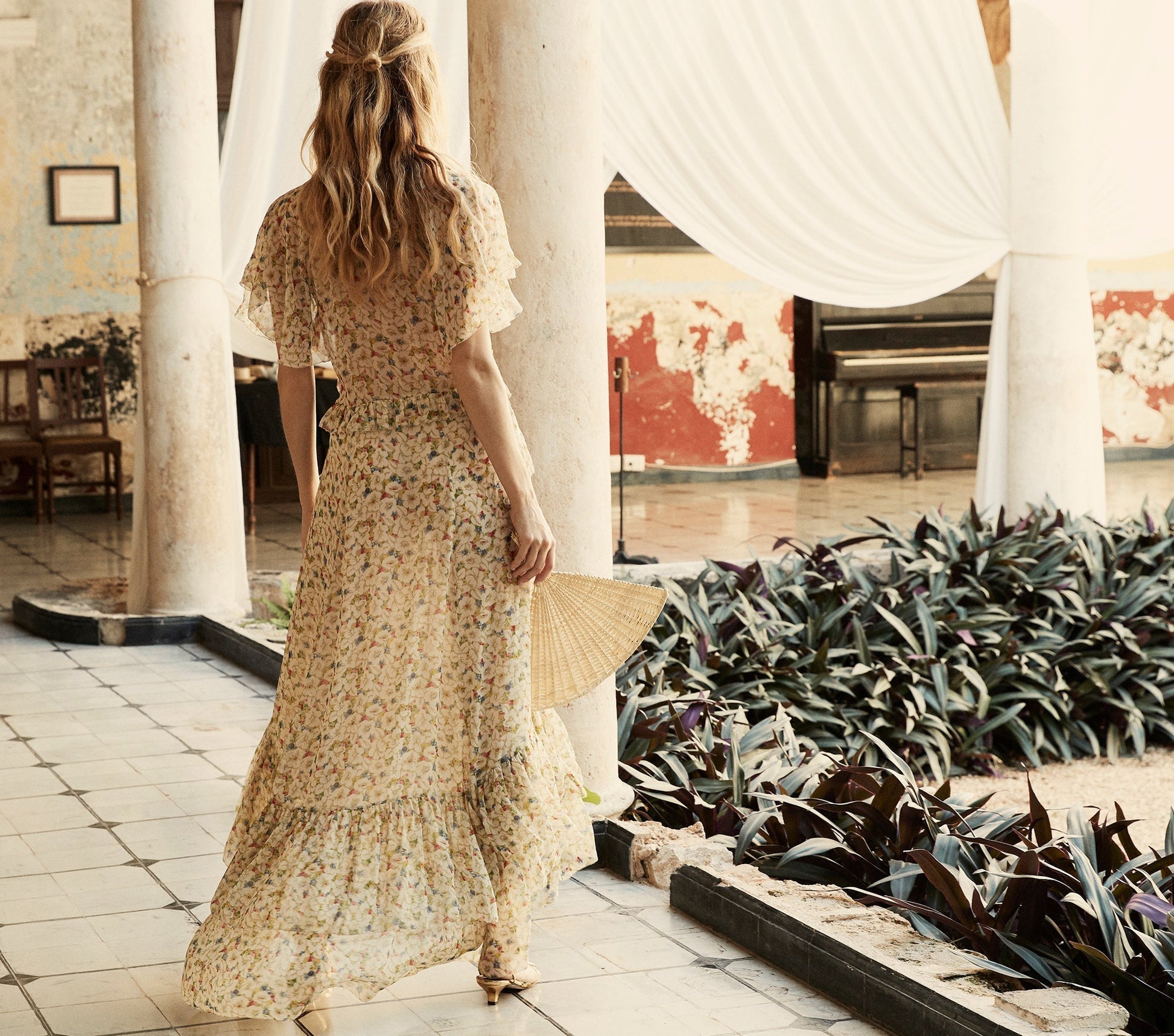 In 100% silk georgette, the DÔEN Antoinette Dress is our vintage-inspired evening look, a showstopper for late night events with a spirit daring enough to take into the daytime. The fluttery cape sleeves reference 1930s movie star gowns, while the low cut and tie up styling meet ruffles for bohemian bliss. In a fresh new floral print, we’re coming up with any excuse this Spring to wear our dearest Antoinette.