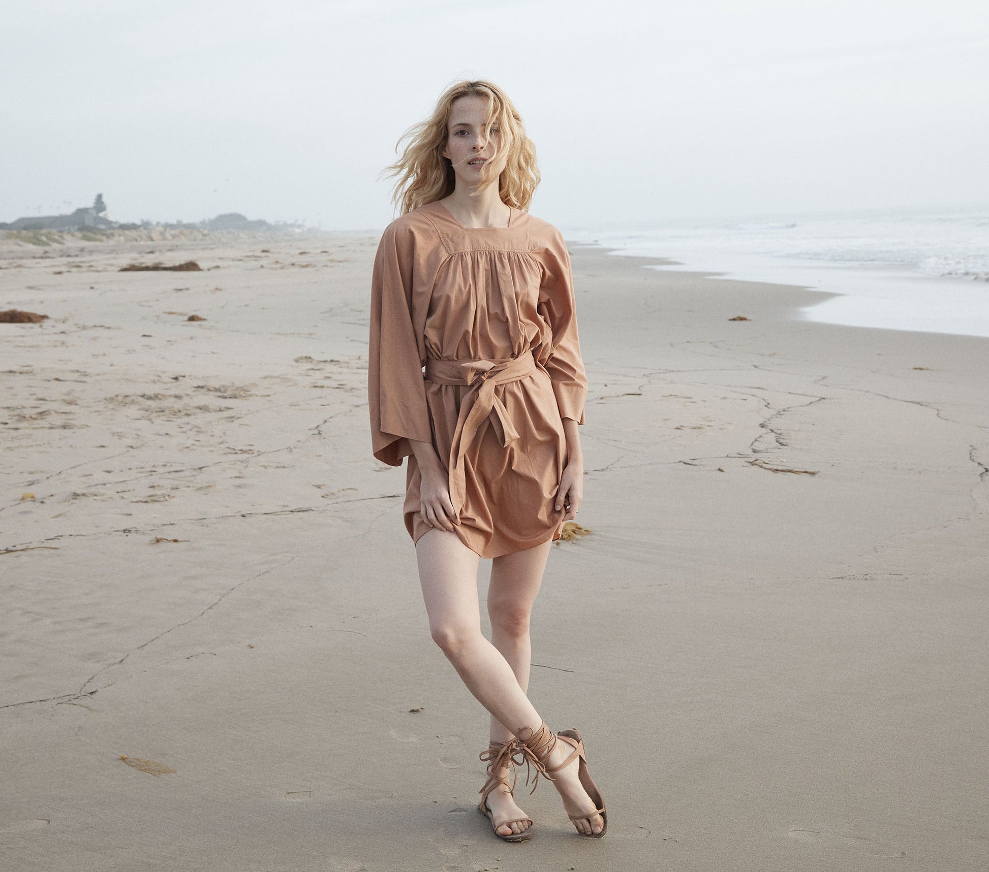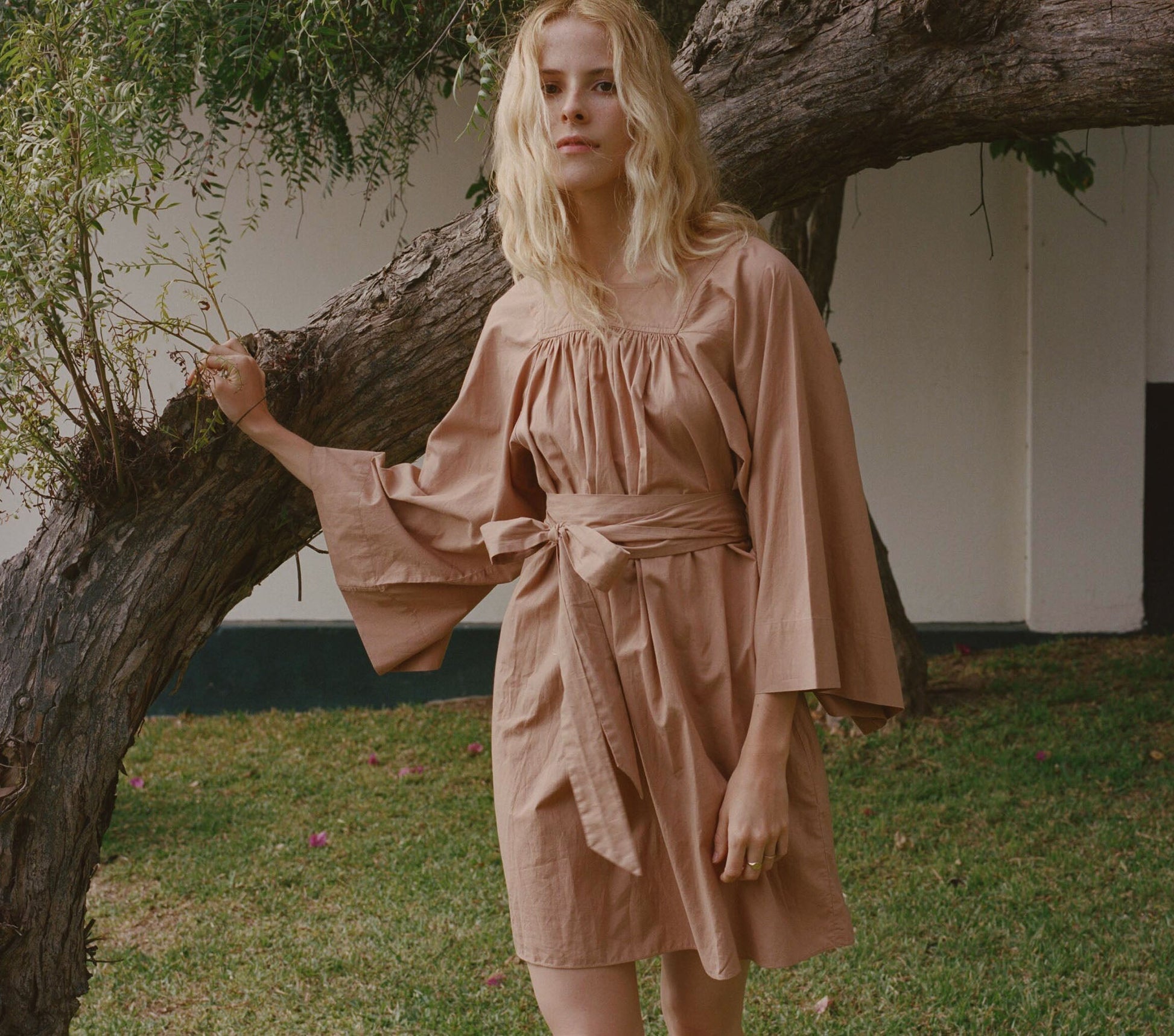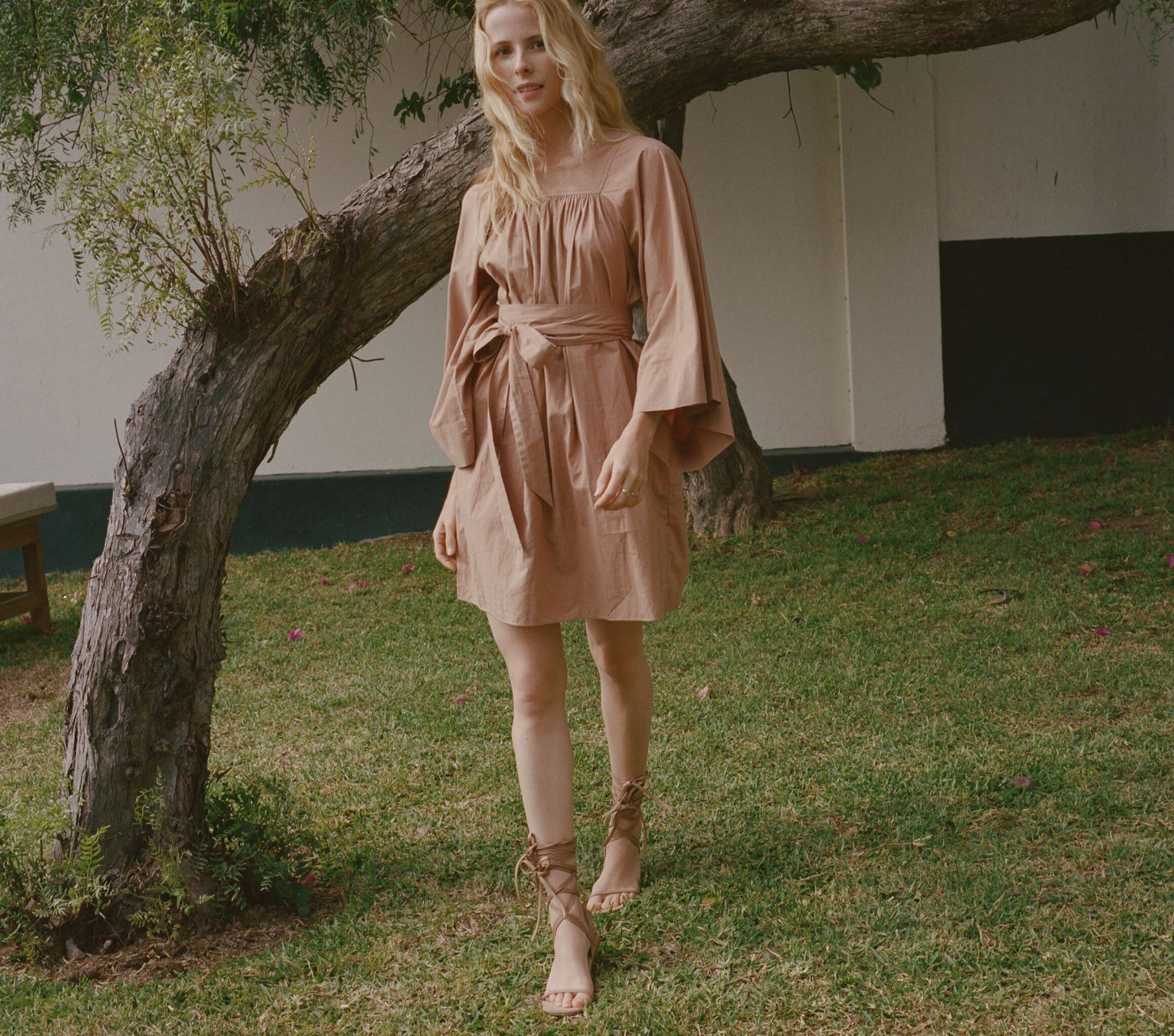 In 100% Cotton, the DÔEN Calder Dress takes the pastoral cut of our Capo Top and transforms it into a 1960s-style minidress. The squared off neckline leads to wide, loose sleeves and an oversized body that can be worn free and easy or cinched at the waist with the extra-long self belt. In classic shades of Black, Salt, Adobe, and Fawn, the Calder is our elevated basic for easy spring dressing.