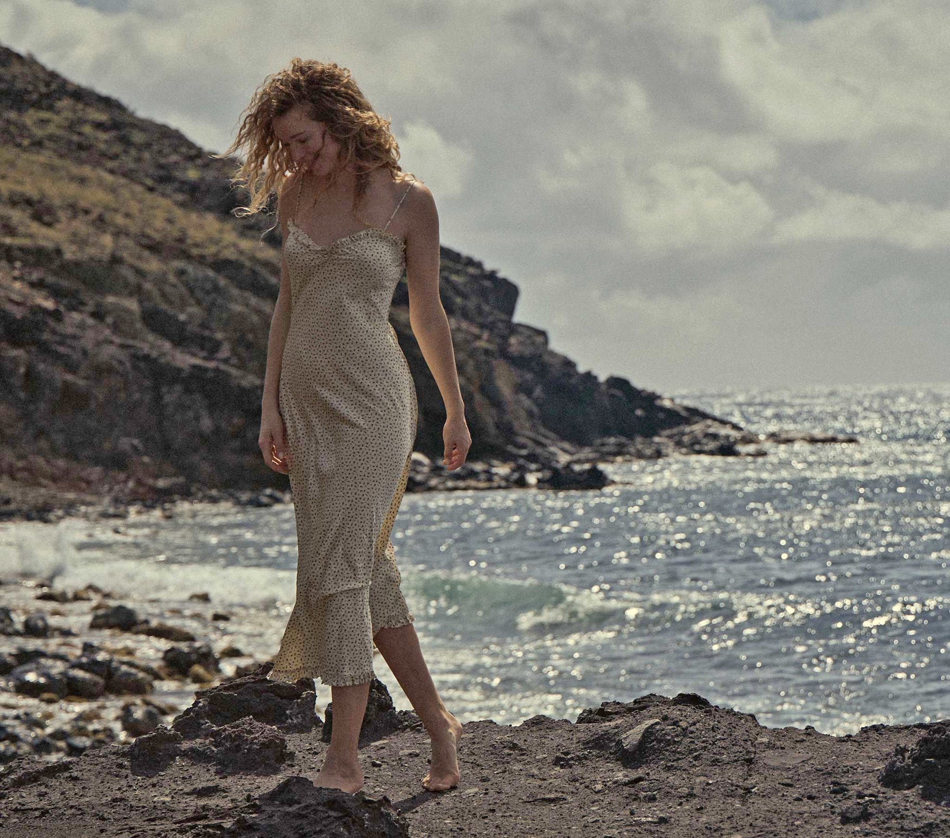 Rendered in buttery-soft silk satin, the Calsi Dress—one of our co-founder Katherine’s favorites—is our take on a ‘30s-style slip dress. It features ultra-skinny straps, bust darts for structure, and shirring at the bust for a subtle sweetheart neckline. A fitted waist gives way to an A-line skirt that falls to mid-calf, while the bust and hem are trimmed with petite ruffles for a touch of playful charm.