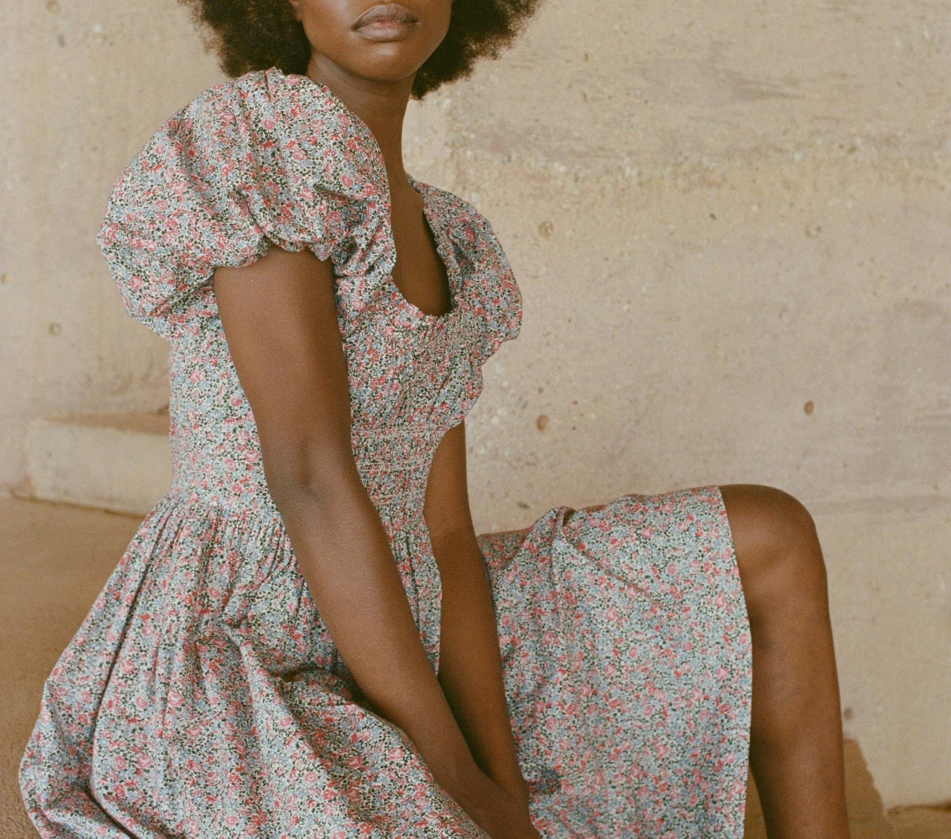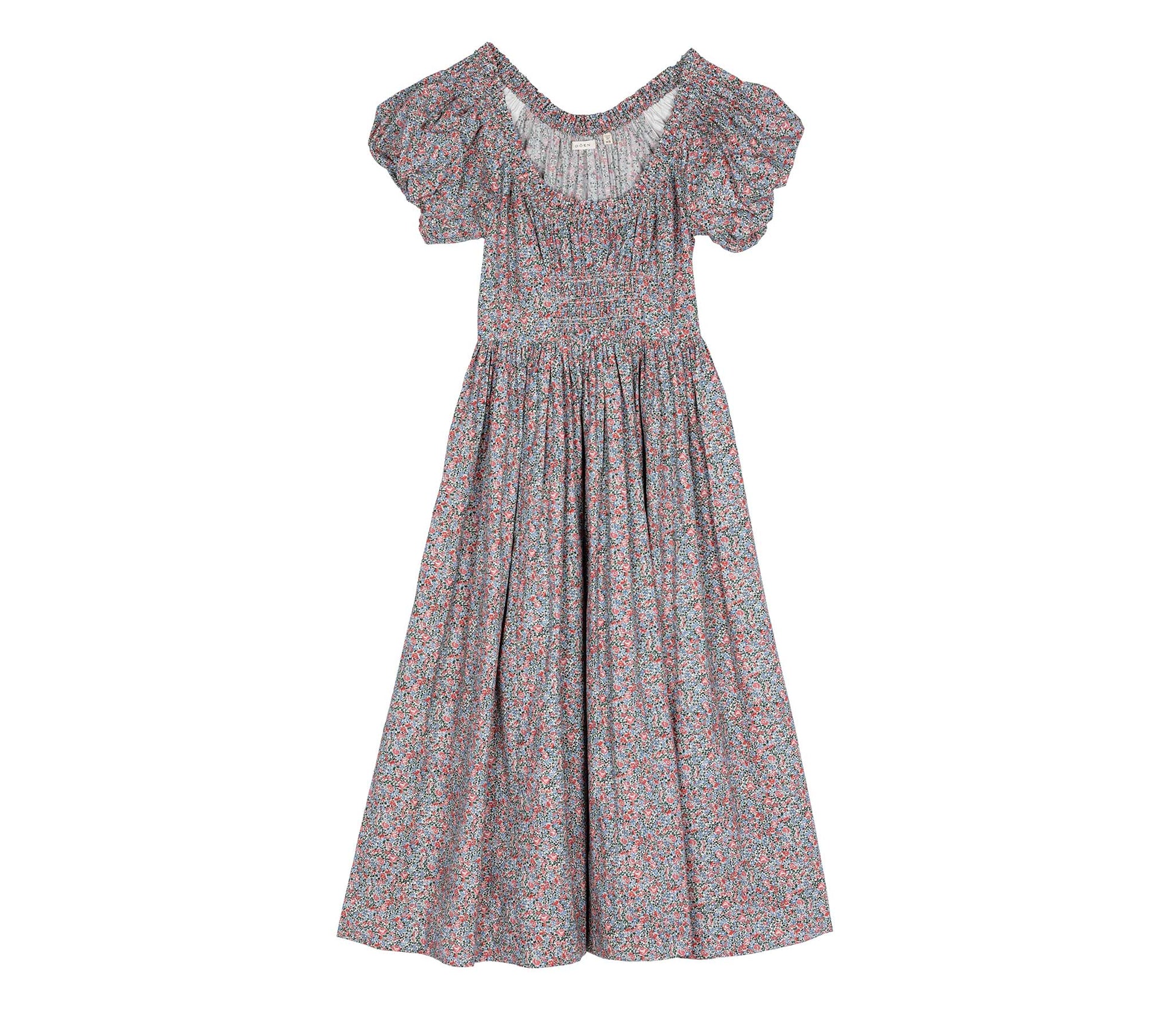 Summoning images of ‘70s floral dresses and the elegant garden frocks of the Edwardian era, the Deia Dress is a full-length beauty that transitions effortlessly from strolling through the garden to dancing under the stars. An elastic neckline lends ease to the graceful scoop neck, calling back to the elasticized short, puff sleeves. Functional smocking along the princess seams of the fitted bodice is cinched with a side seam zipper to create the perfect fit, before flaring out to a dramatic tiered skirt ending in a wide turnback hem.