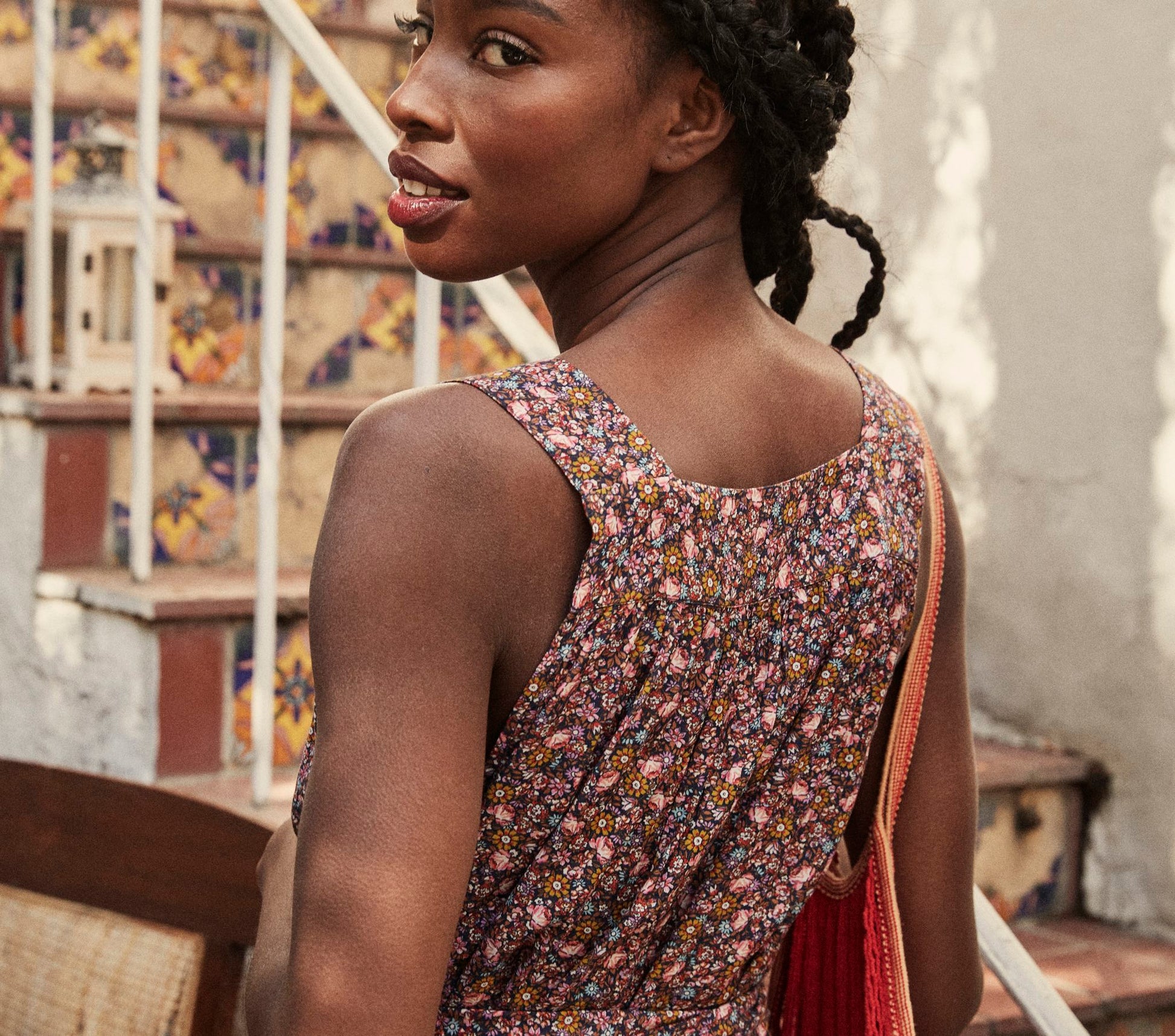 - Styled with the Coast Sandal; friend wears the Little Thoreau Dress