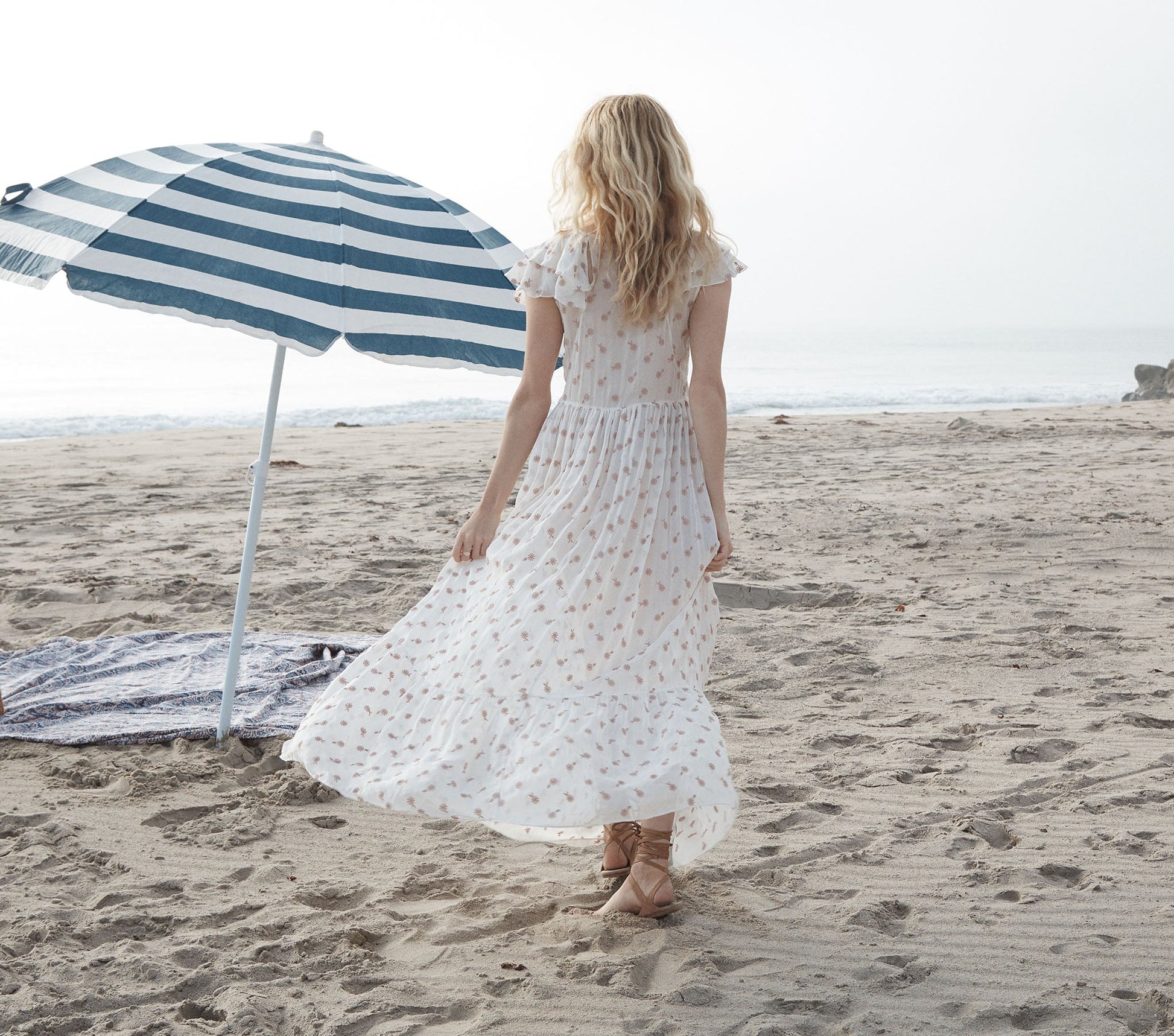 In 100% viscose, the DÔEN Flora Dress takes our favorite mesh fabric and gives it a spring update with embroidered daisies trailing leaves. The double ruffled sleeves give the shoulders a flower petal effect, and twin button closures at the back neckline are just the sort of thoughtful detailing that we love. The shape flatters with its natural waistline and single ruffle tier at the hem for movement. In Salt with contrast embroidery, neutral adobe, or cool standout Ginger, the Flora Dress is our spring go-to for all occasions day or night.
