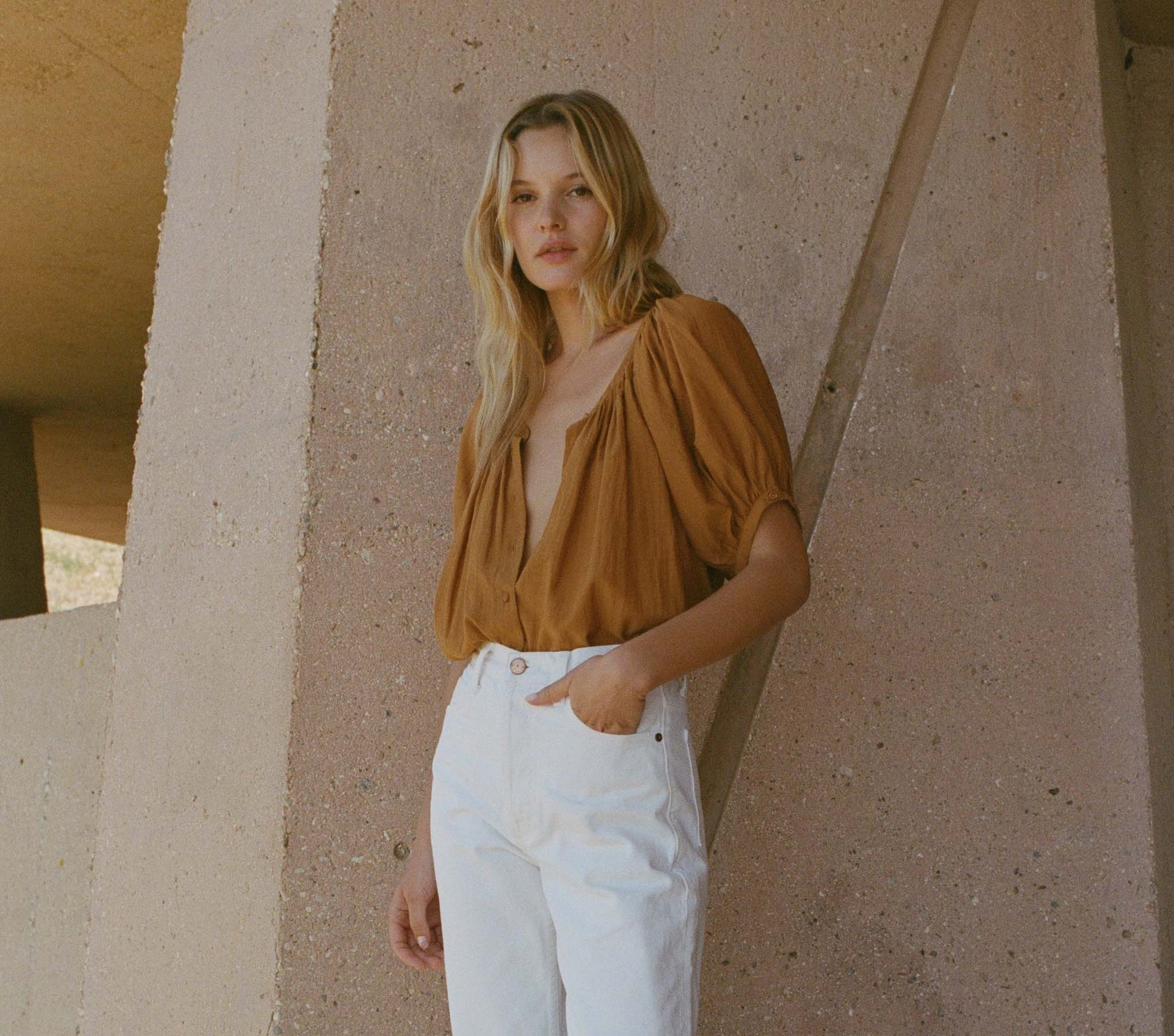 The June Top is a short-sleeved take on our beloved Jane Blouse, for those days when you want to catch a little extra sun. With full raglan sleeves gathering in a banded cuff and echoed by the gathered neckline, the June Top is sweet simplicity. The button front and roomy fit make this an easy piece to reach for, ideal for dressing up or down year-round.