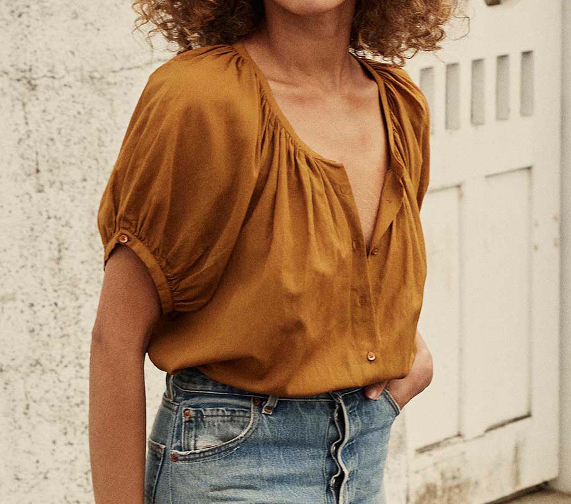 The DÔEN June Top is a short-sleeved take on our beloved Jane Blouse, for those days when you need to catch a little extra sun. With full raglan sleeves gathering in a banded cuff and echoed by the gathered neckline, the June Top is all sweet simplicity. The button front and loose fit make this an easy piece to reach for, ideal for dressing up or down in the summertime and all year long.