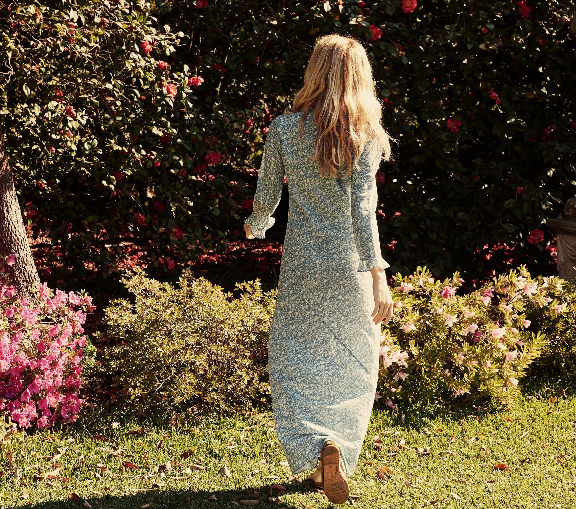 In soft cotton viscose, the Dôen Loire Dress borrows its name from France’s lush Loire Valley and its bias cut shape from our favorite Adarsha Dress. The classic body-skimming shape is accented only with a ruffle at each cuff, making for a simple silhouette ready for the breeziest days out picking flowers and visiting châteaux.