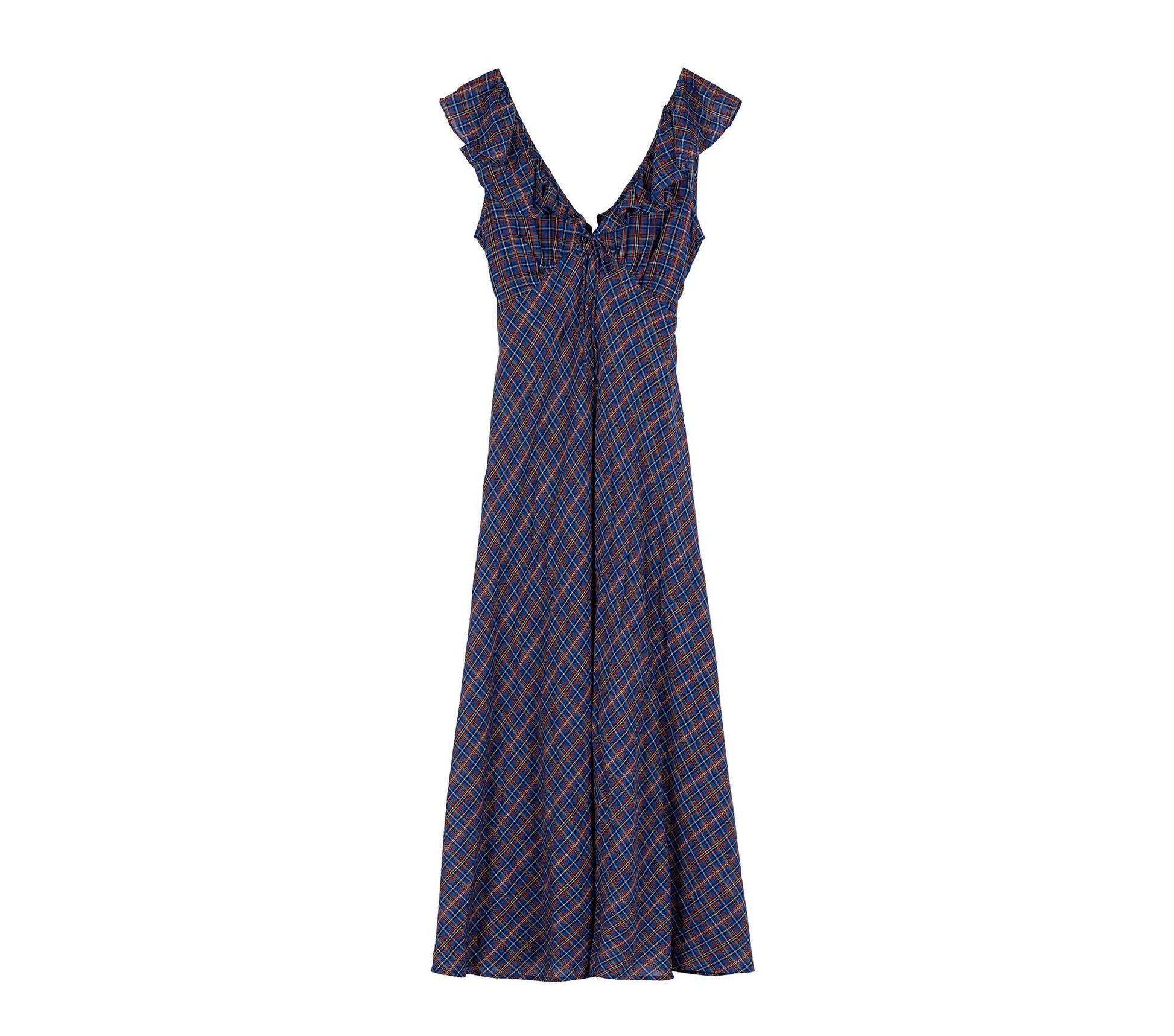 In a soft, lightweight blend of organic cotton and viscose, the Lulani Dress features a plunging back and V-neckline adorned with cascading ruffles and a fixed tie. A fitted bodice gives way to an ankle-grazing bias-cut skirt, while a back waist tie allows you to adjust the fit.