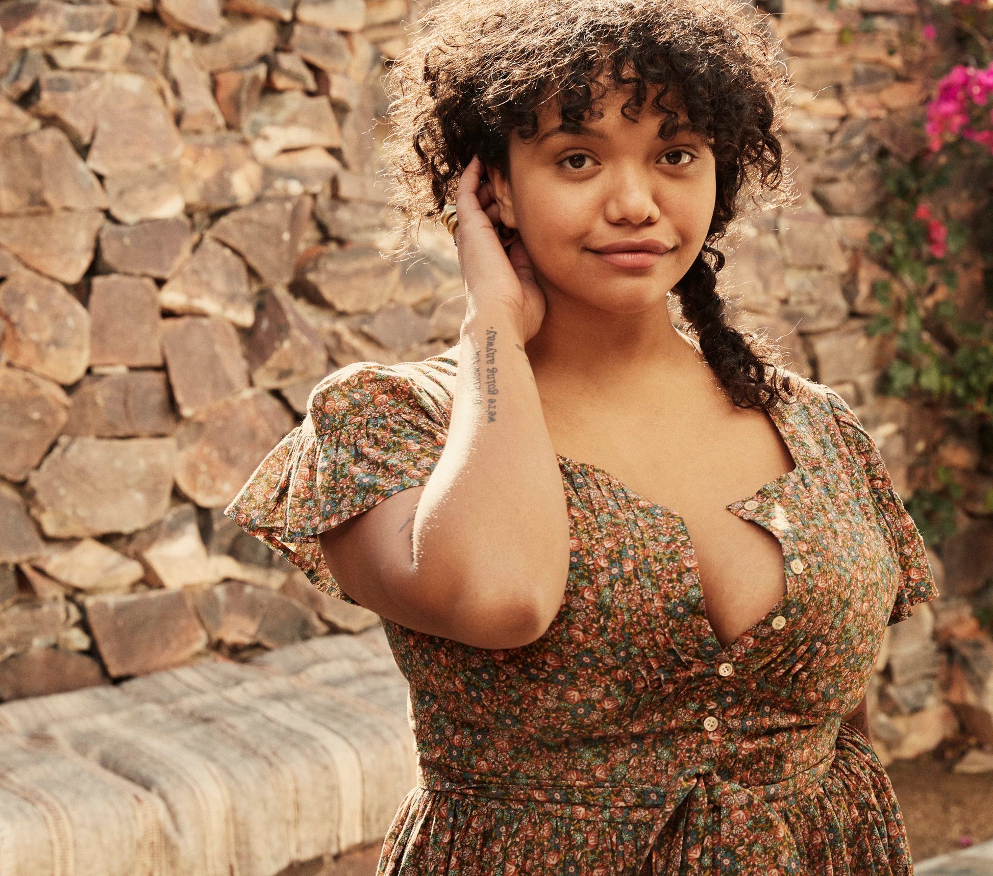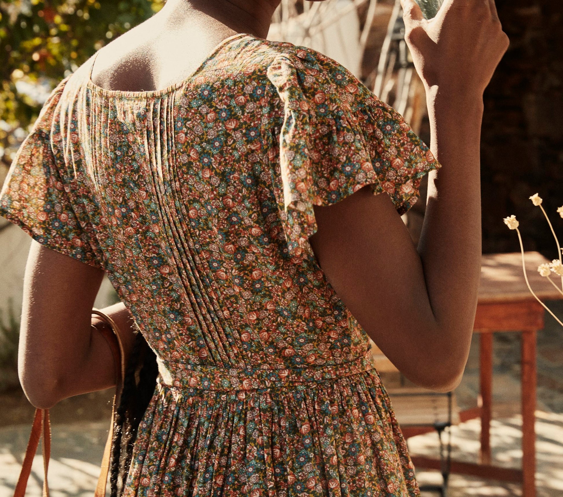 In an organic cotton/viscose blend, the DÔEN Marfa Dress is a button-down beauty we’re wearing from the farmers market to the coast, undone at the bodice and skirt as high or low as the day demands. Pintuck detailing frames the button placket and highlights the back, while our unique sleeve construction pairs a petite cap with a curved fluttering ruffle. Front patch pockets and a self belt complete the look.