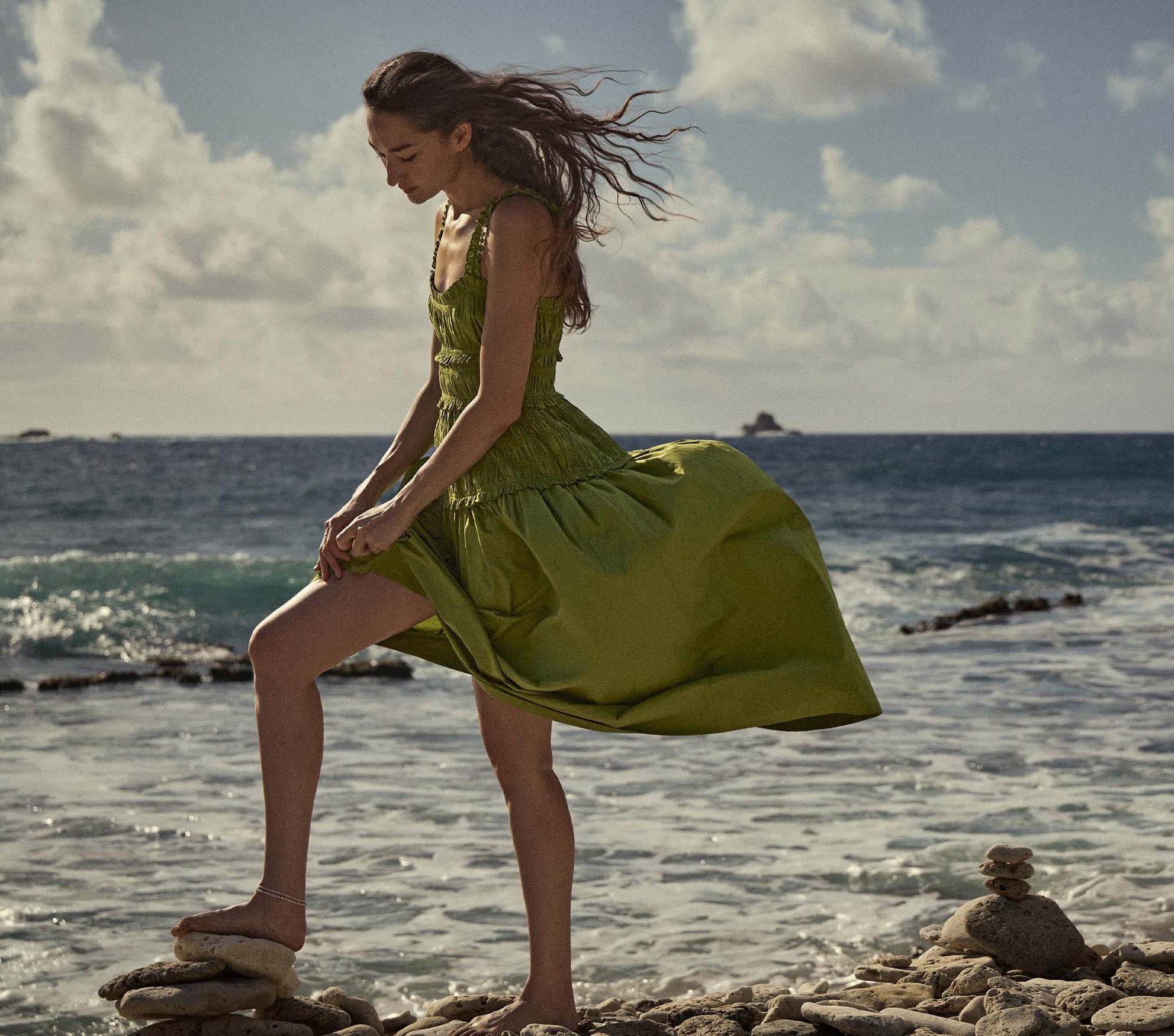 Crafted from crisp organic cotton poplin, the Marianne Dress features a square neckline, a gathered bust, and a fitted bodice framed with petite ruffles. A third gathered panel finishes just below the hips, flaring out into a full-length skirt, while elastic lends give to the straps, bust, and waist.