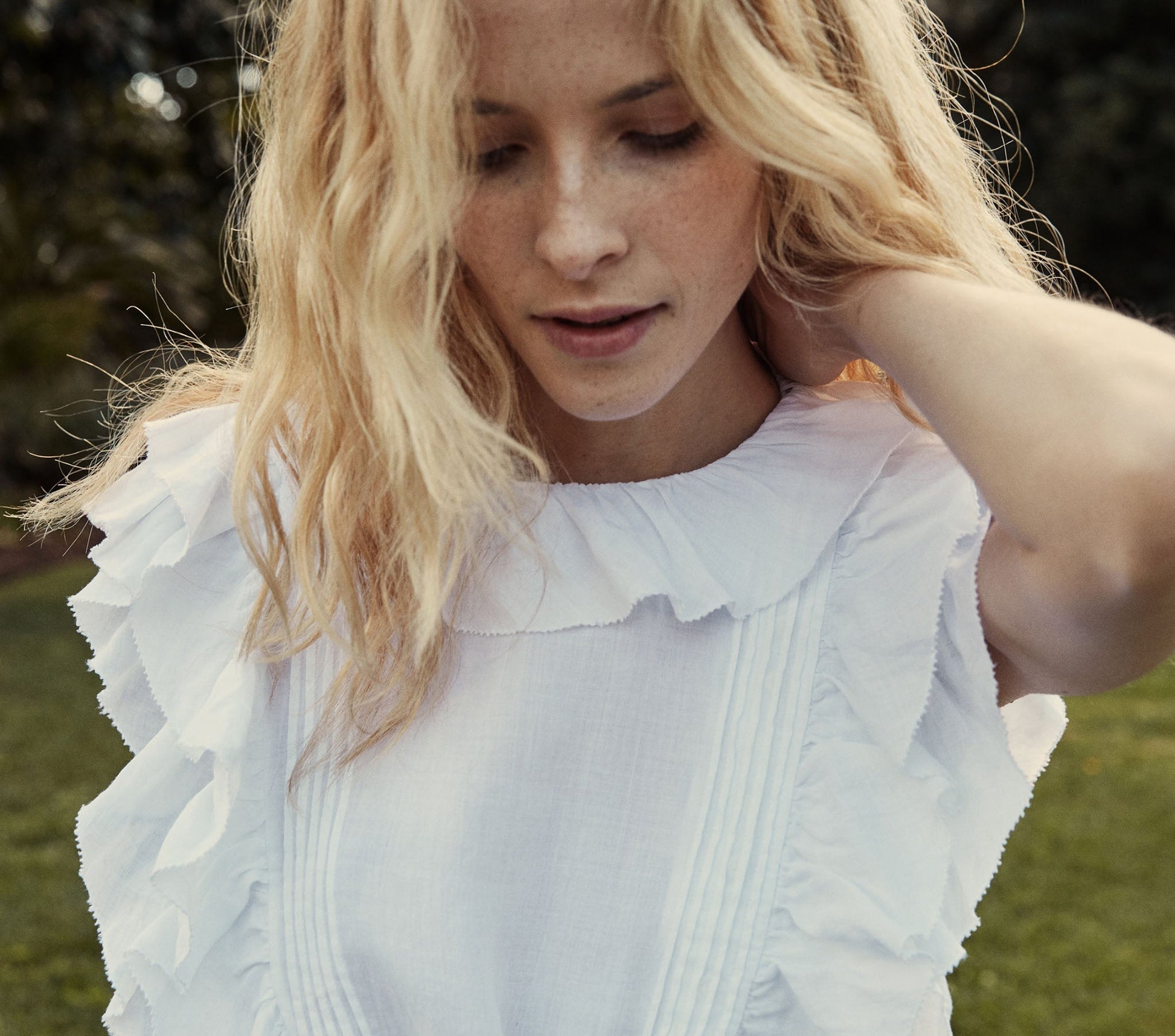 In 100% Ramie, the Dôen Peony Dress is a fun, flirtatious mini dress with an asymmetric button front framed with picot-edged ruffles and pintucks, finished with a ruffle flounce at the hem. The double wrap self belt keeps it sweetly cinched. The perfect summer day dress, this will take you from a late breakfast on the patio to an afternoon at your favorite museum, straight on to an evening at your favorite bistro by the river.