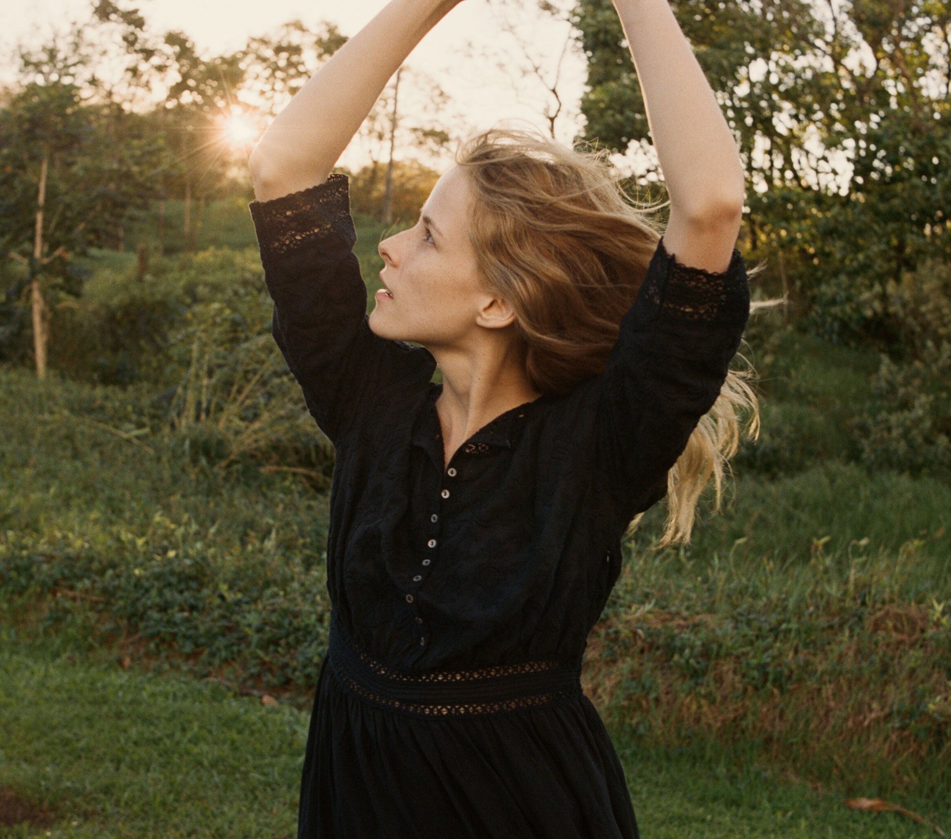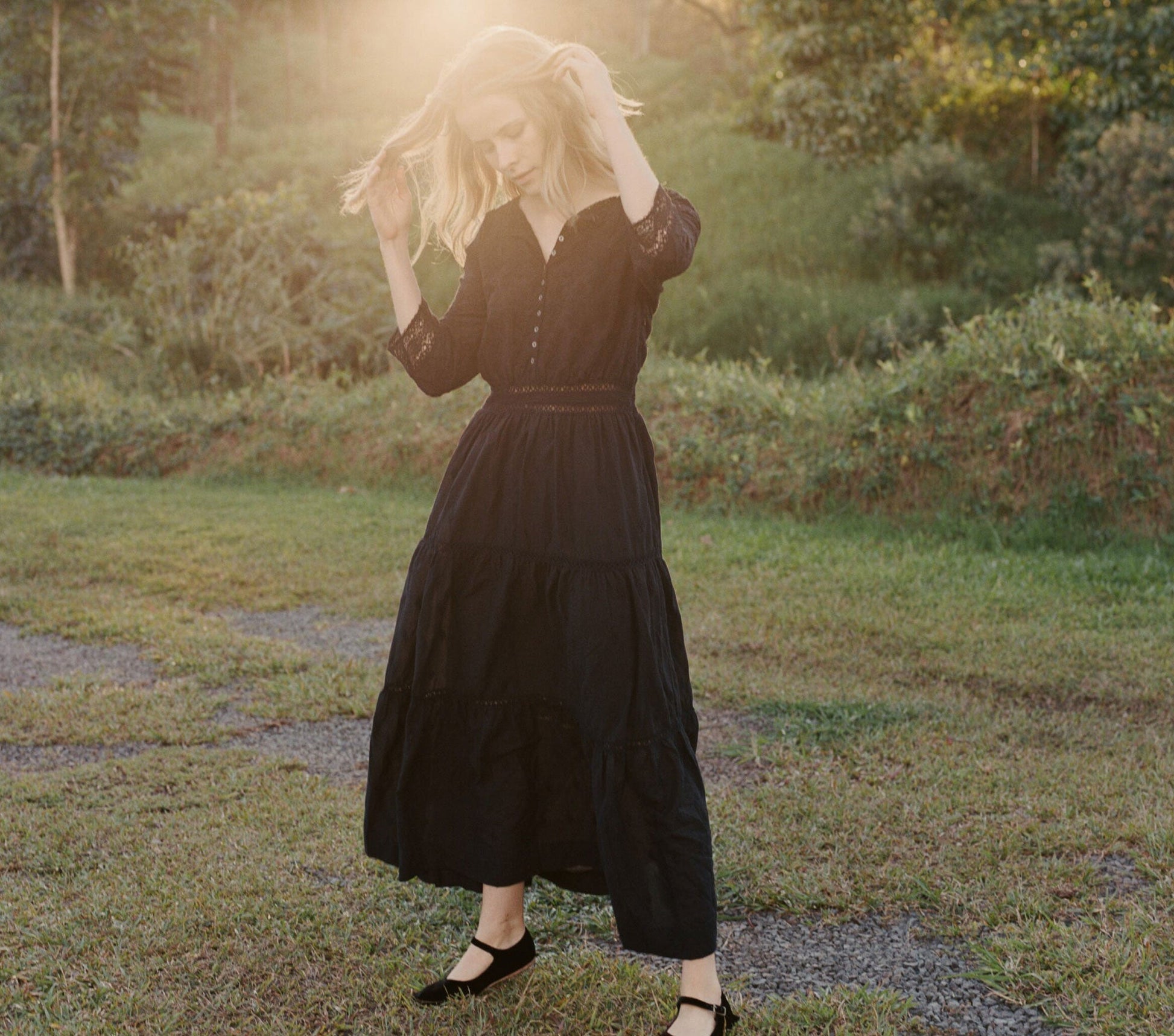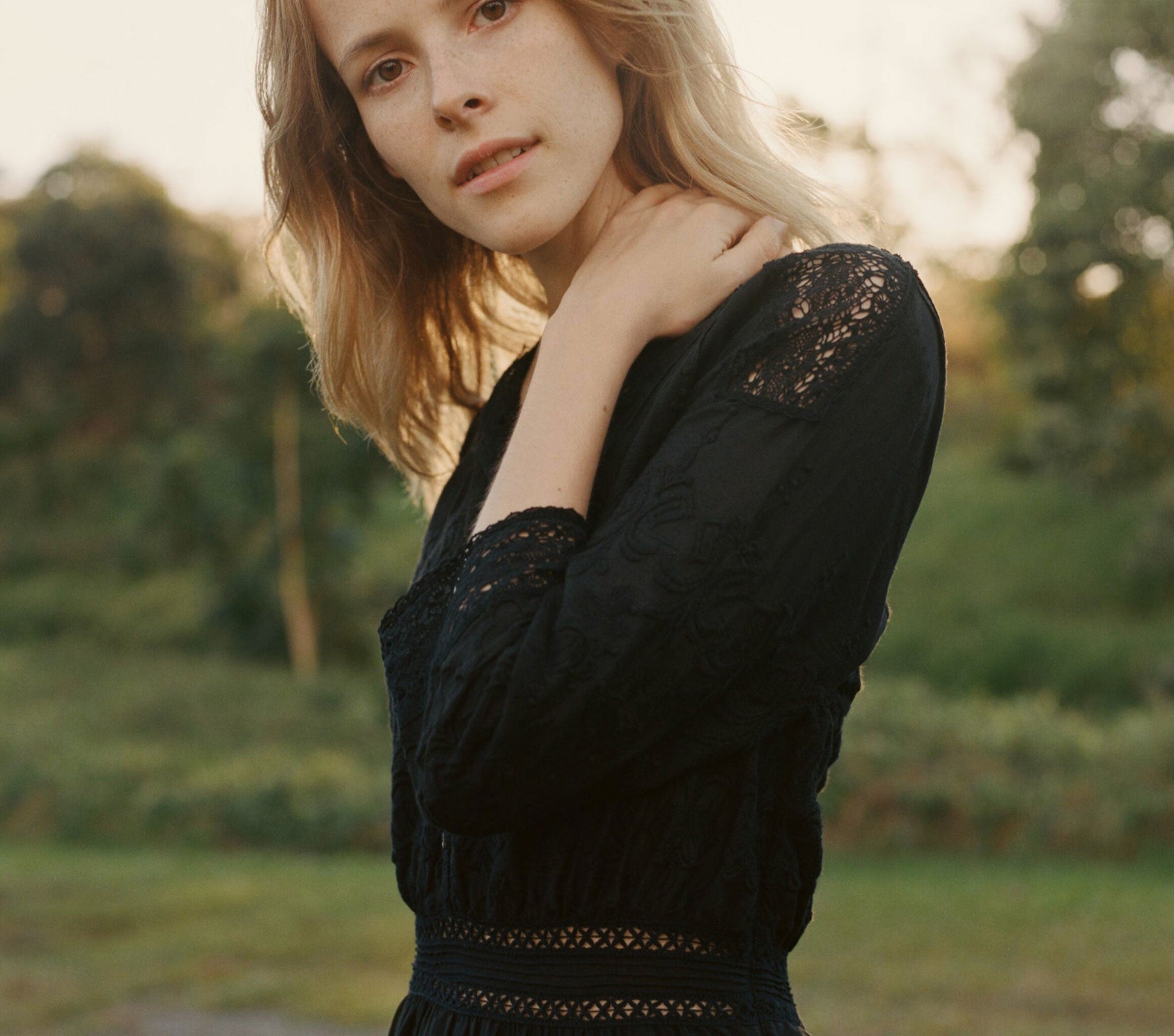 In super soft cotton voile, the DÔEN Provencal Dress is the perfect dress for spring. Carefully embroidered in an abstract floral pattern, the collar, waist, and skirt are accented with schiffli lace panels. We were inspired to create this piece by our love of Edwardian vintage for our first Spring collection, and are thrilled to remake it this season in a longer version, now available in Black as well as Salt. Wear day or night, preferably on the coast.