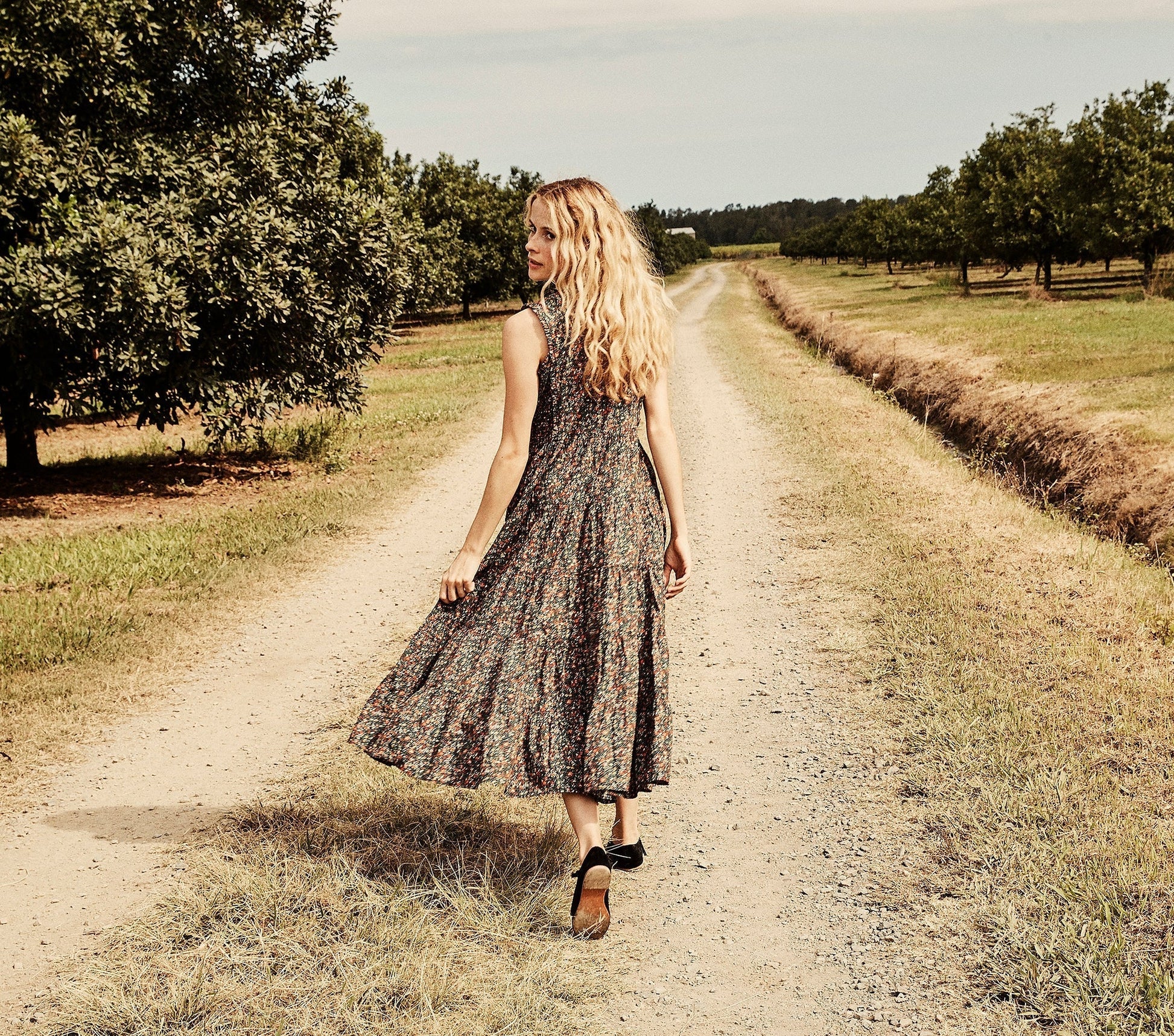 In 100% cotton, the DÔEN Raven Dress has a close-clinging bodice trimmed with tiny pleated ruffles at the neck opening and sleeve hems to add texture to the allover floral print. Smocking at the side panels adds ease, with a natural waist seam descending to a long skirt with five smocked tiers. The rose-strewn print stands out in a crowd or blends into the wild forest - however you prefer to wear it.