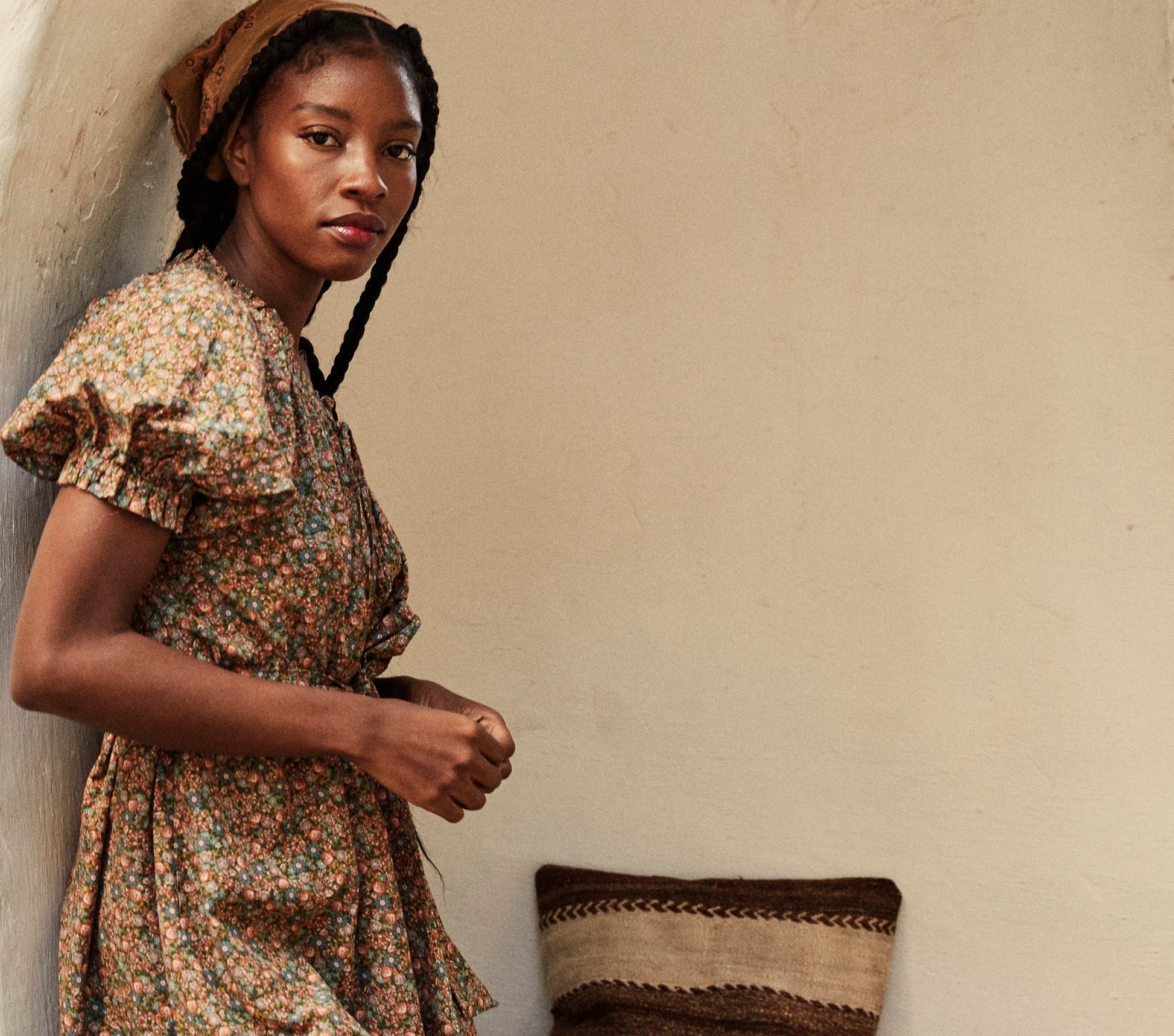 In an organic cotton/viscose blend, the DÔEN Safflower Dress adds puff sleeves and a self belt to a full, breezy silhouette for everyday comfort. Tunneled elastic through the neckline makes this dress easy to wear on or off the shoulders, complete with a functional drawstring tie to bring the neckline in closer as you like.