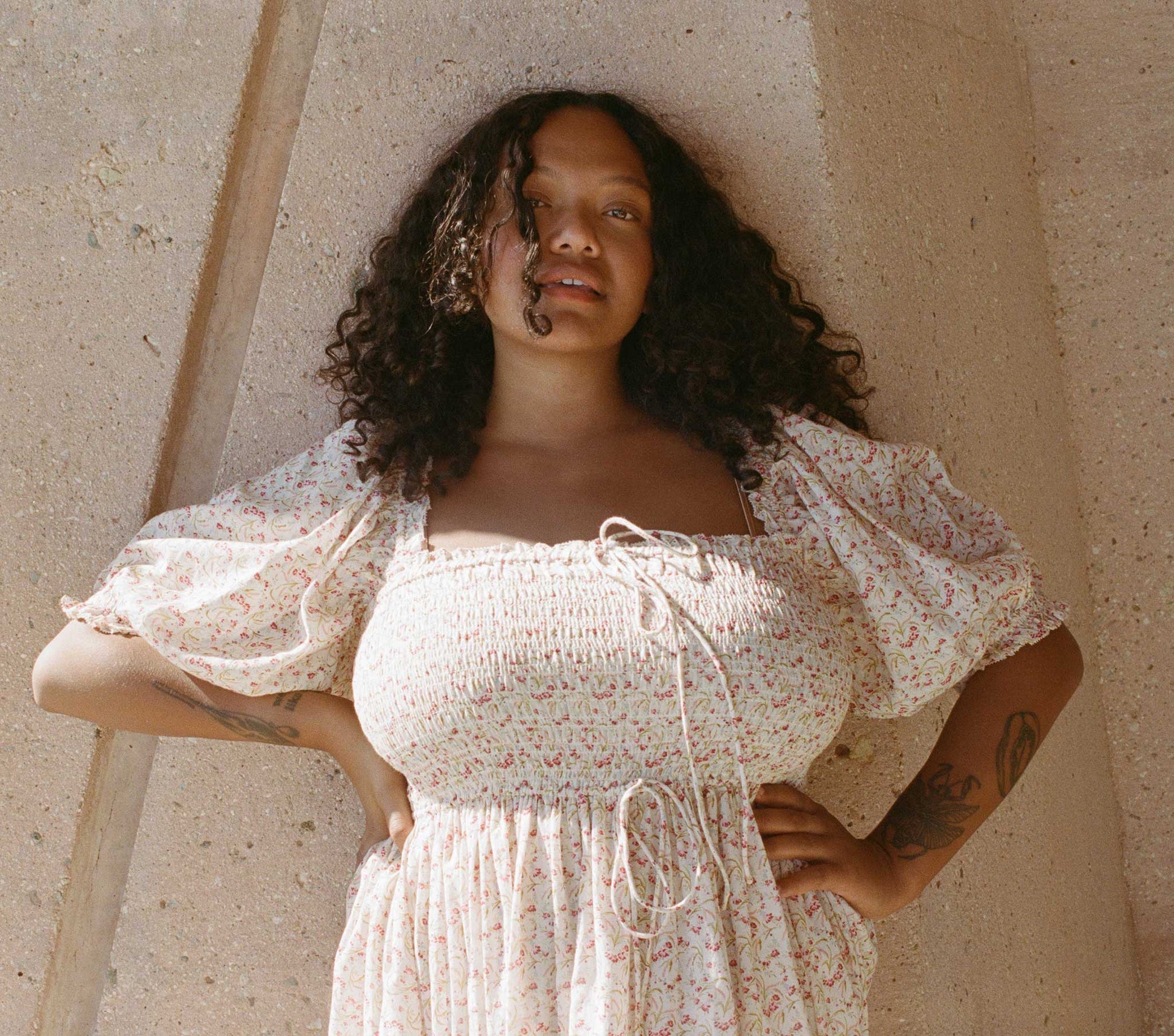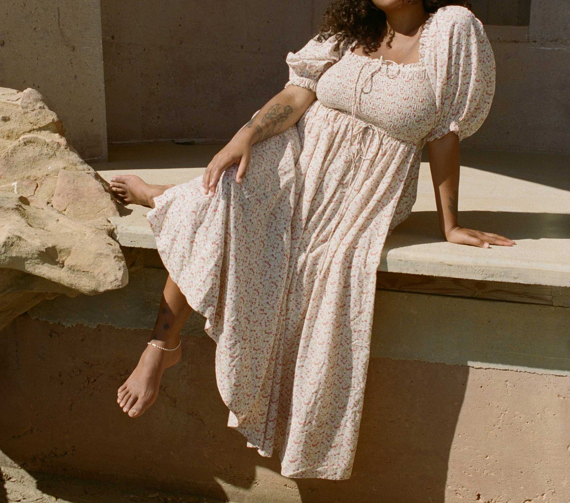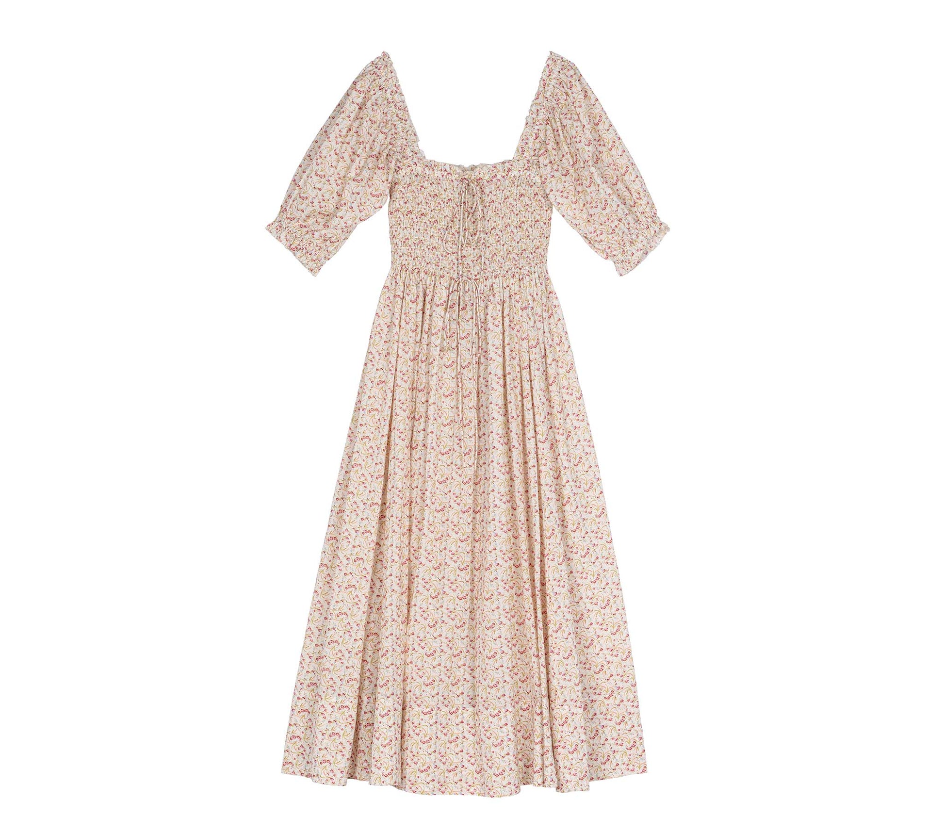 With a square neckline, the Siena Dress features puffed sleeves and a full skirt as an ode to vintage charm. Cut from a breezy cotton viscose blend, the Siena’s petite floral motif is an ode to summertime romance. Elasticized smocking at the bodice and a decorative bow at the low neckline allows you to wear the sleeves on or off the shoulder. Cinch the waist with the functional tie, creating a more dramatic flow to the full skirt, or leave loose for ease.