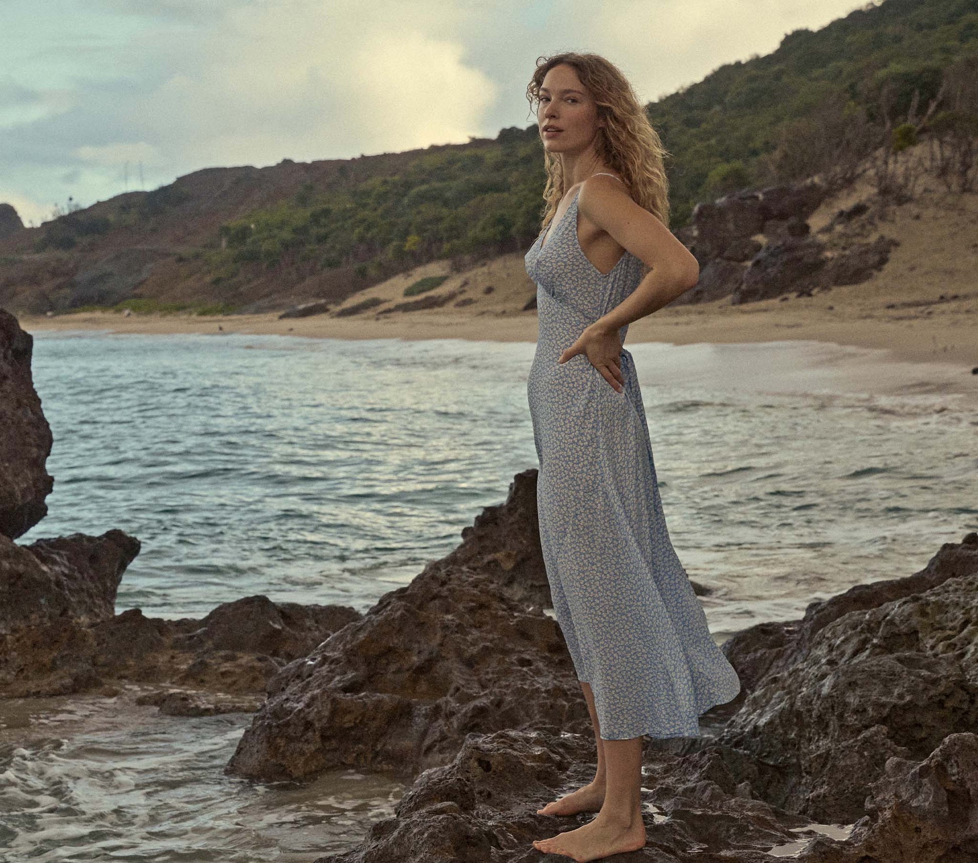 In a soft, lightweight viscose, the Sonia Dress features a deep V-neckline, ultra-thin spaghetti straps, and an adjustable back waist tie. Shirring at the bust creates give, while a bias-cut skirt grazes the ankles.