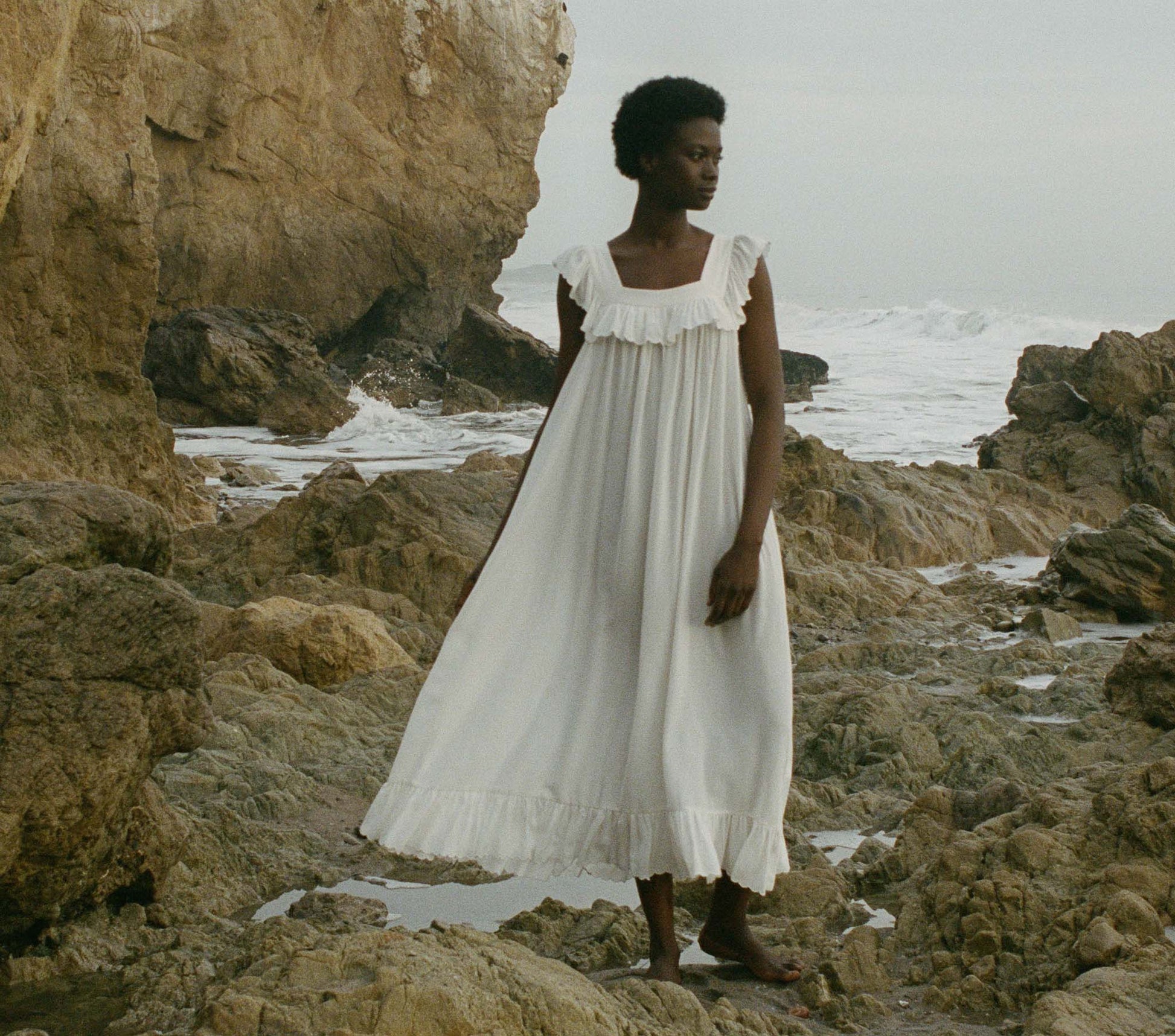 Rendered in buttery sandwashed silk, the Sycamore Dress features a loose, breezy cut and a square neckline framed with a wide scallop-edged ruffle. A full-length skirt finishes in a ruffle at the hem. Wear it loose, or cinch it close with the included tie belt.