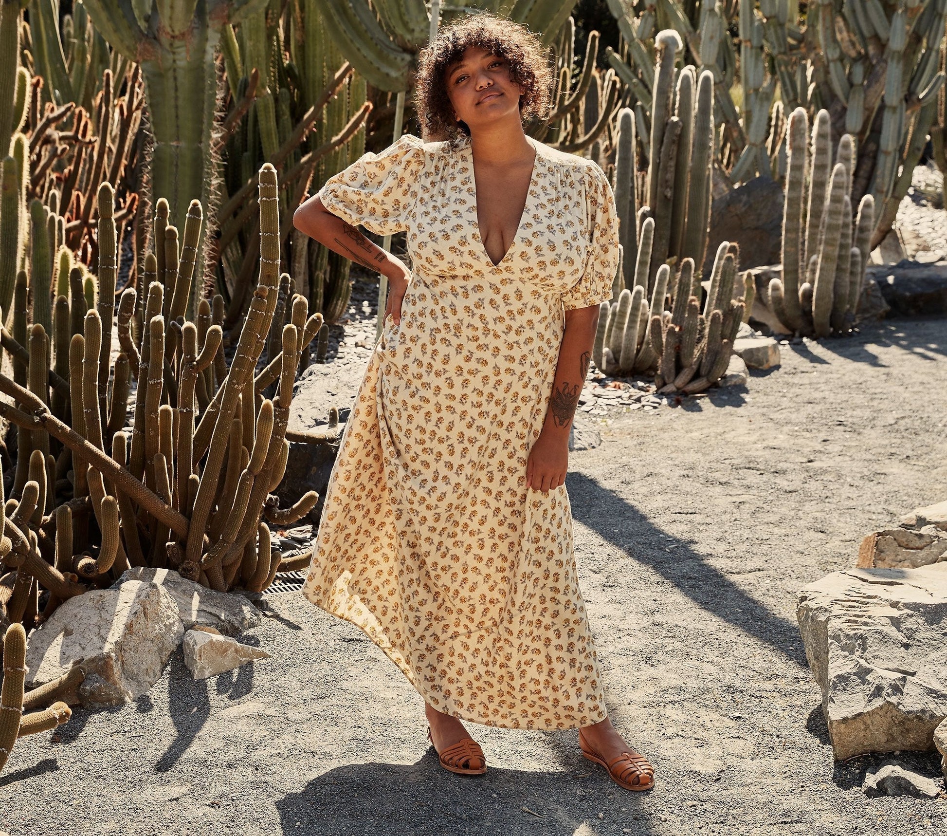 In 100% raw silk, the DÔEN Wisteria Dress is what we’re wearing from morning to evening, with a jean jacket for farmers market afternoons and high heels for nights out dancing under the bright spring stars. The deep V neckline leads to our signature structured waistband with subtle smocking details, while the short sleeves are gathered at the shoulders and banded cuffs to create a soft fullness. The skirt is cut generously for maximum twirling.