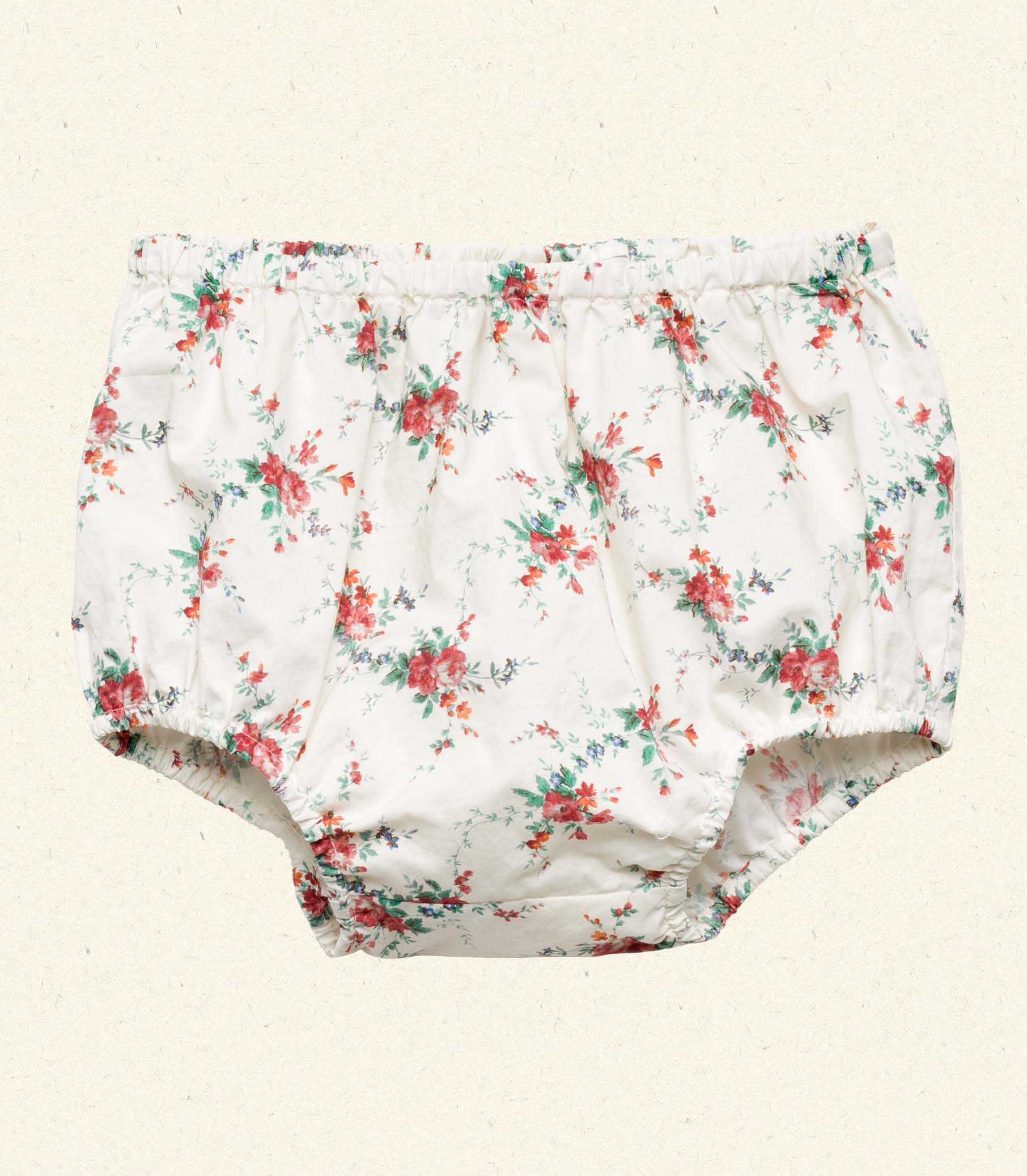 A sweet bloomer for littles, the Minnie is crafted from a crisp cotton lawn rendered in Alessia Rose, an archival Liberty Fabrics floral from the 1860s with delicate clusters of roses, tiny blossoms, and trailing foliage. With stretchy elastic for all-day comfort, the Minnie can be worn underneath the Rosette Dress for a matching moment.